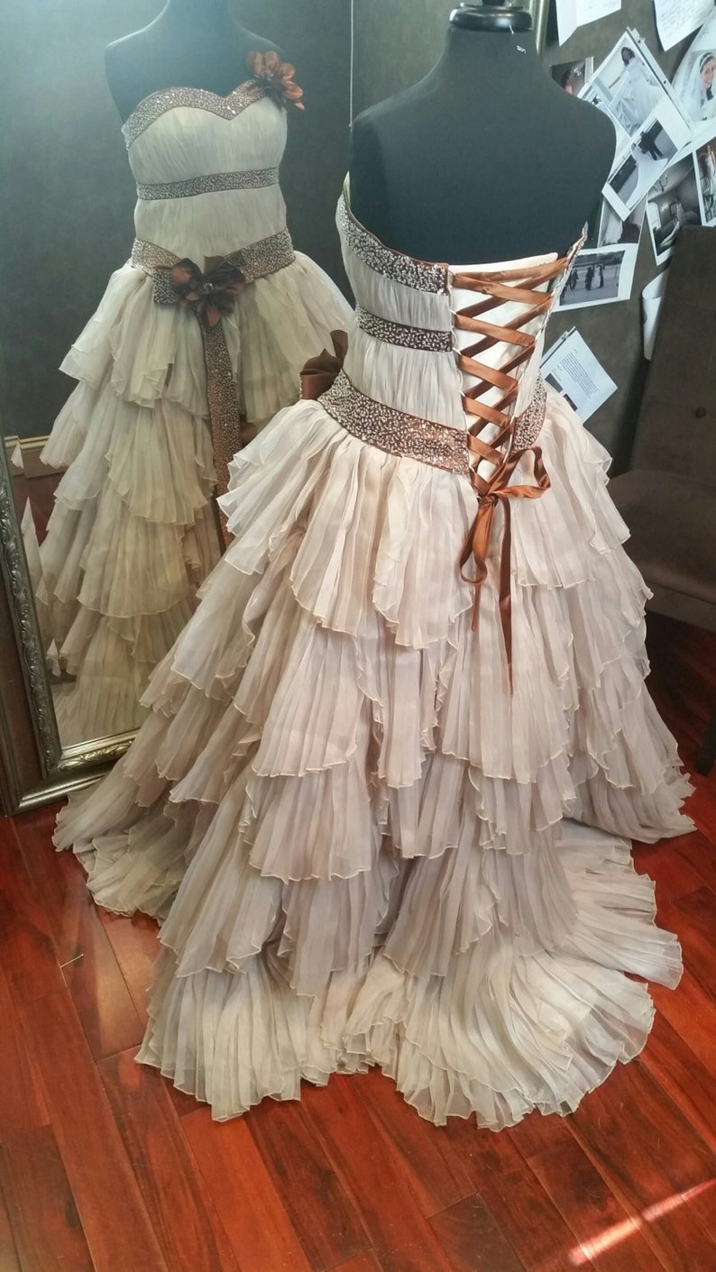 Steampunk Wedding Dress, Opulent Vintage Bustle Steampunk Silk Bridal by ... : From a victorian style gown, to a goth or steampunk dress to a gown in a brilliant fall color, the sky’s the limits when it comes to halloween wedding dress.